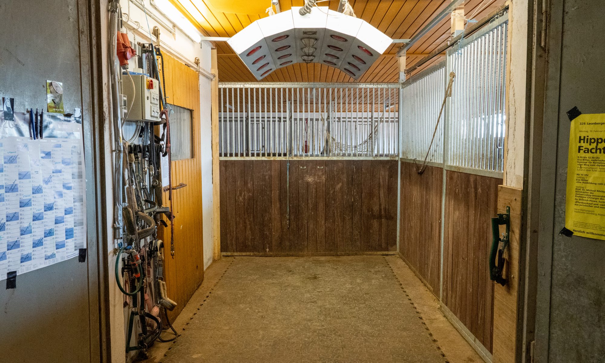 Mit zwei Putzplätzen gibt es genügend Platz zur Pflege der Pferde. Einer verfügt über ein Solarium und ist mit Gummiboden ausgestattet.